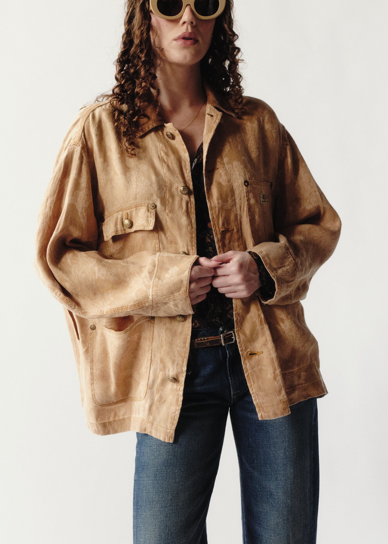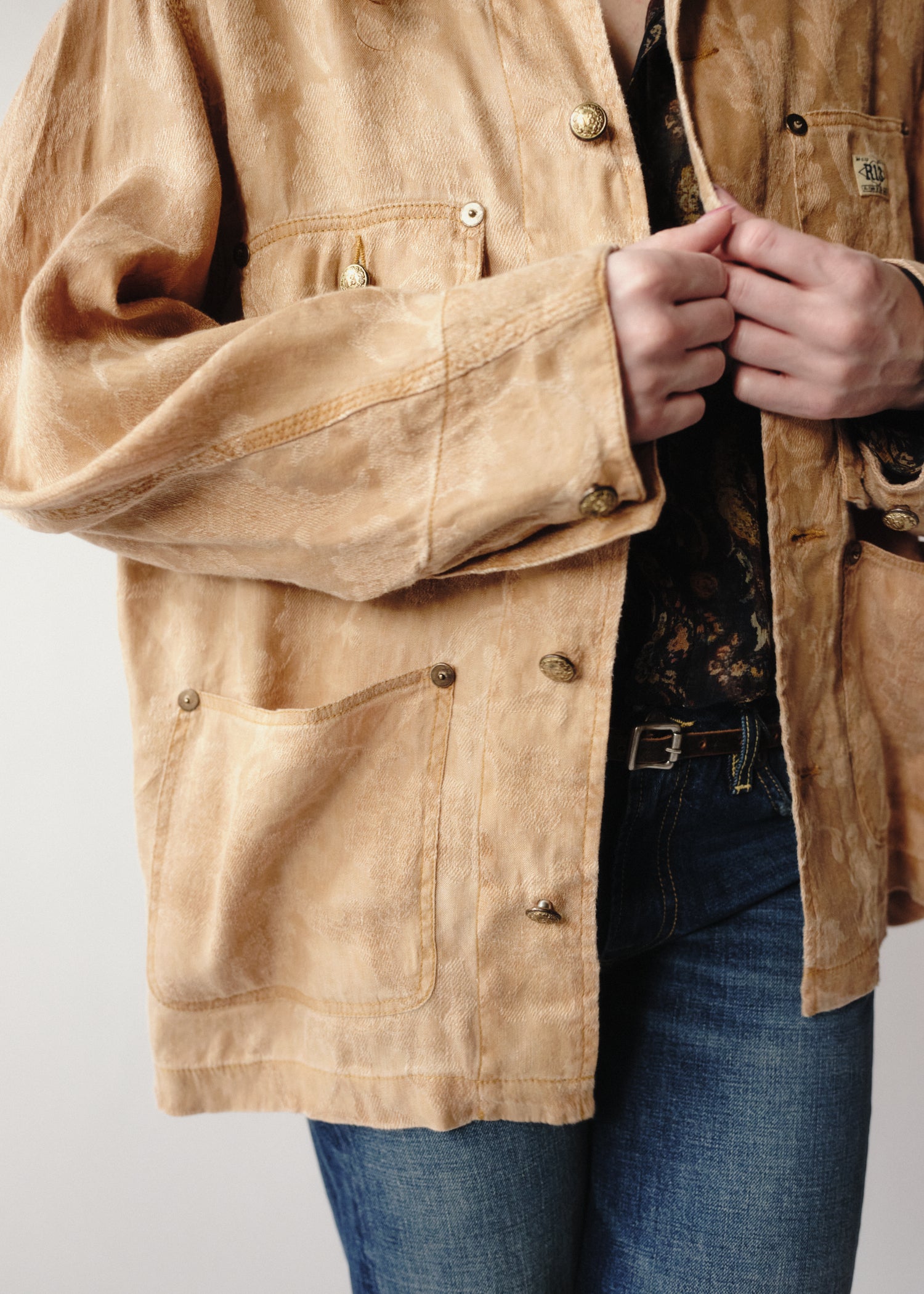 Classic shape chore jacket in lightweight silk damask